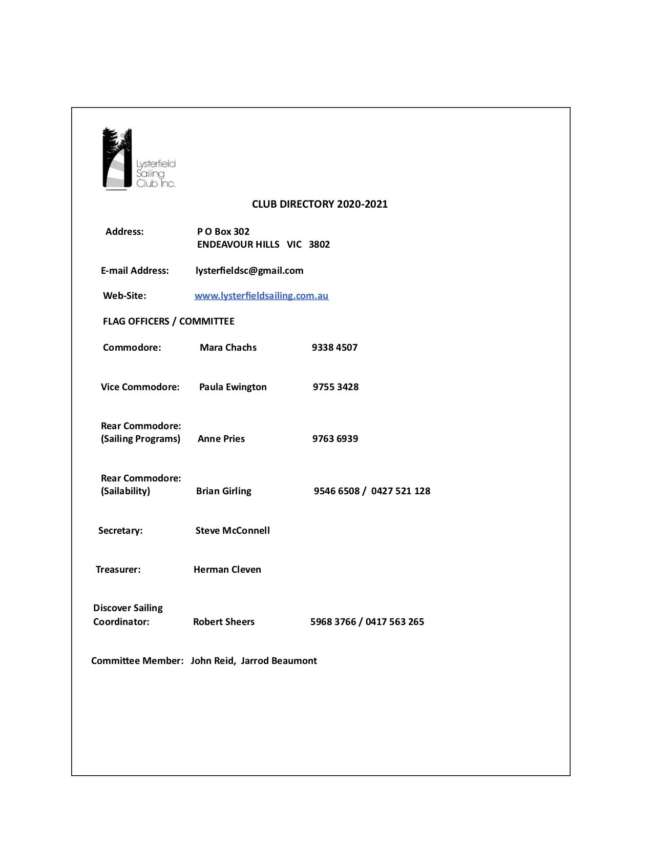 | Vice Commodore | Steve McConnell |